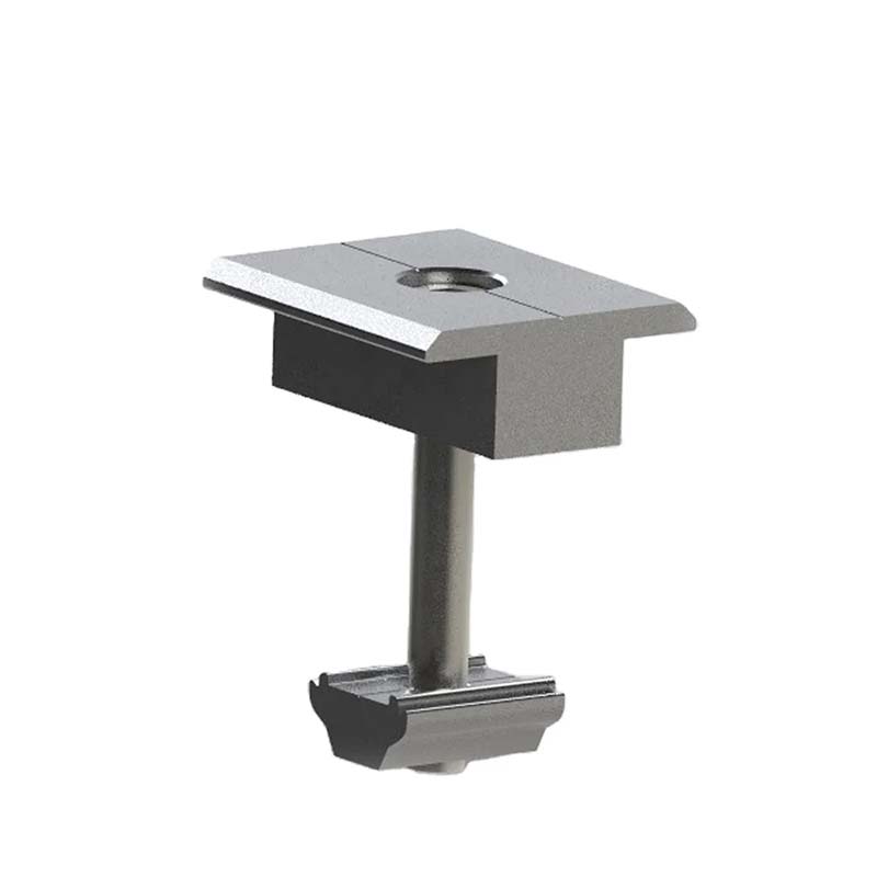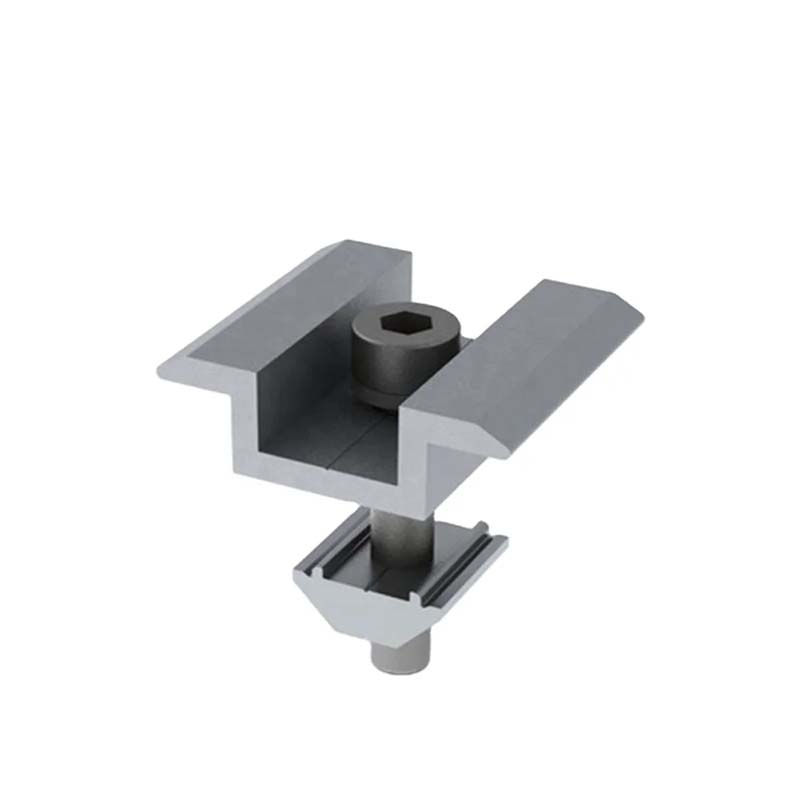 25yearsA Braçadeira central solar É um componente de montagem essencial usado para fixar com segurança dois painéis solares adjacentes a um trilho de suporte comum. Posicionado entre os painéis, ele trava ambas as estruturas no lugar, garantindo uma instalação estável e sem folgas. Projetado para instalação rápida e fabricado com materiais duráveis e resistentes às intempéries, ele também costuma auxiliar no aterramento elétrico entre os painéis para maior segurança do sistema.